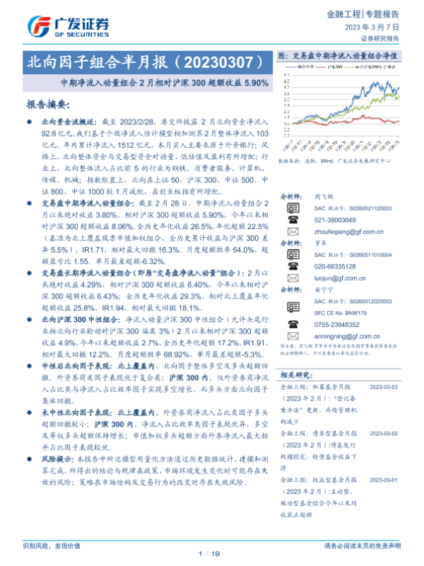【广发证券】【20230307】北向因子组合半月报:中期净流入动量组合2月相对沪深300超额收益5.90%-19页