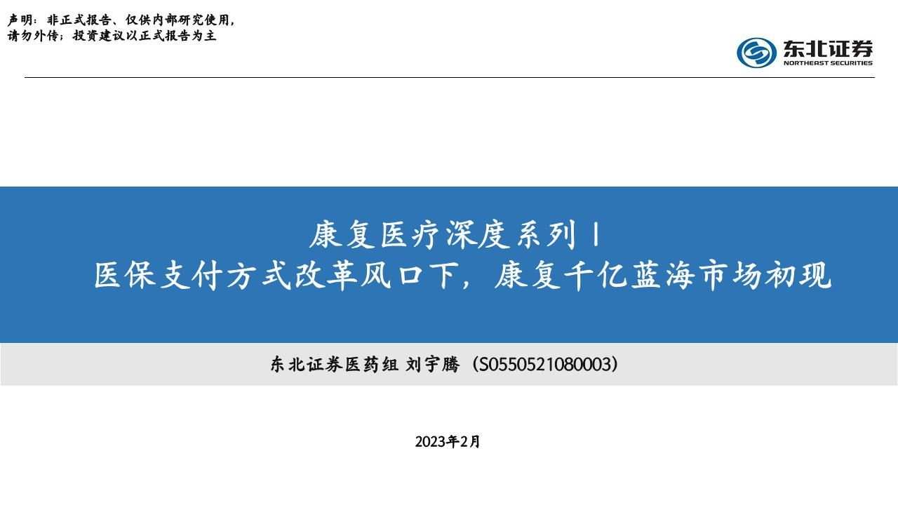 【东北证券】【20230228】医疗行业康复医疗深度系列:医保支付方式改革风口下,康复千亿蓝海市场初现-55页