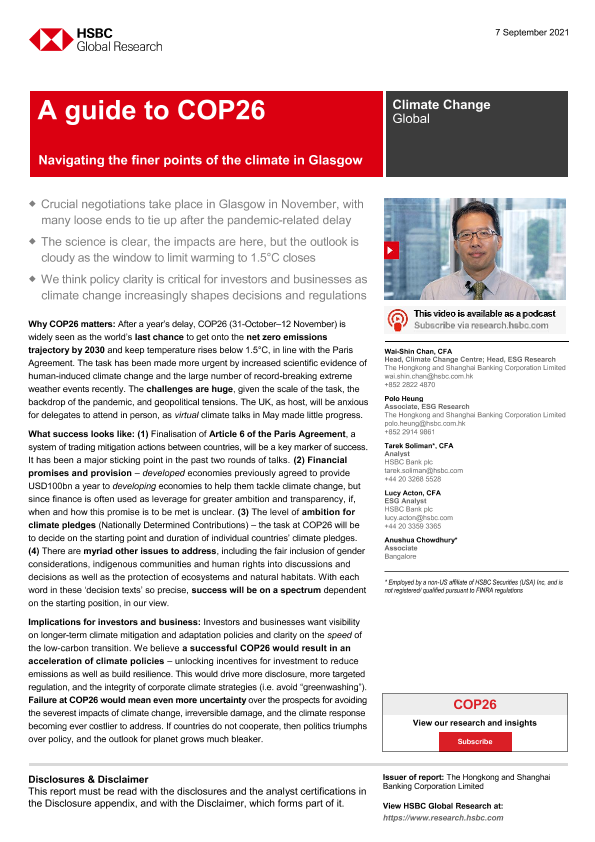 【The Hongkong and Shanghai Banking Corporation Limited】【20210907】HSBC-全球投资策略之气候变化-COP26会议指南:探索格拉斯哥气候的微妙之处-23页