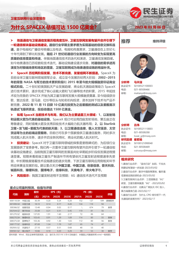 【民生证券】【20230306】卫星互联网行业深度报告:为什么SPACEX估值可达1500亿美金?-36页