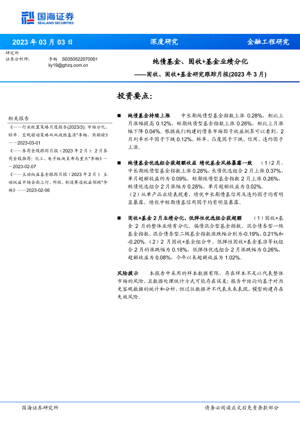 【国海证券】【20230303】固收、固收+基金研究跟踪月报(2023年3月):纯债基金、固收+基金业绩分化-20页