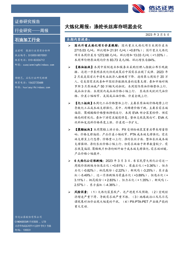 【信达证券】【20230305】大炼化周报:涤纶长丝库存明显去化-20页