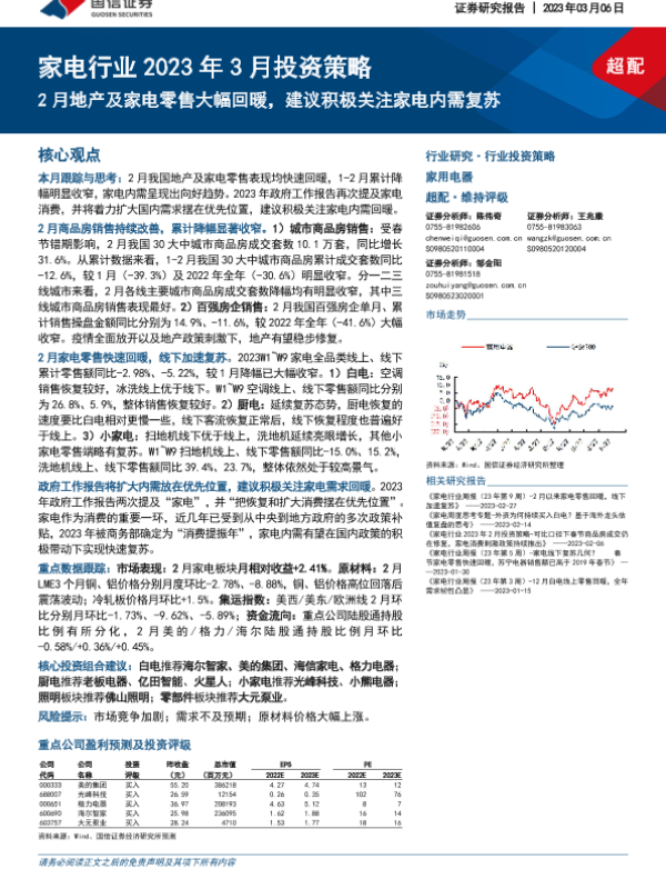 【国信证券】【20230306】家电行业2023年3月投资策略:2月地产及家电零售大幅回暖,建议积极关注家电内需复苏-19页