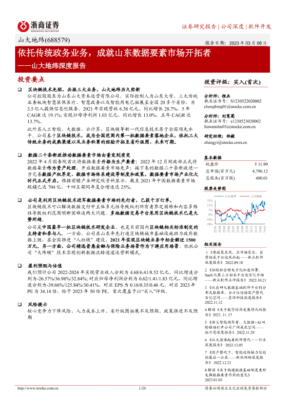 【浙商证券】【20230308】山大地纬深度报告:依托传统政务业务,成就山东数据要素市场开拓者-26页
