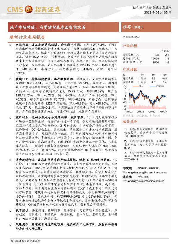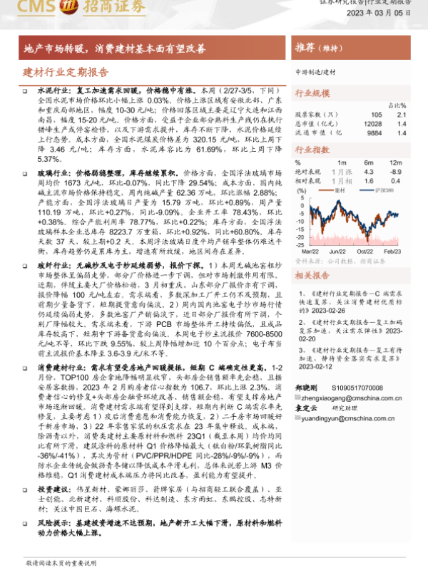 【海通证券】【20230305】建材行业定期报告:地产市场转暖,消费建材基本面有望改善-24页