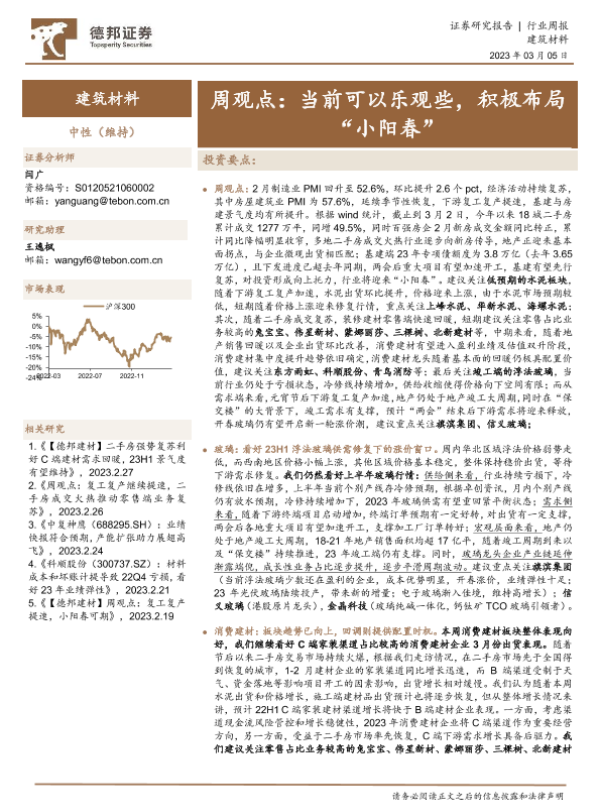 【德邦证券】【20230305】建筑材料行业周观点:当前可以乐观些,积极布局“小阳春”-31页