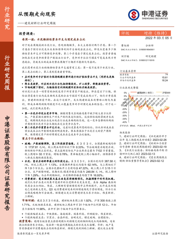 【申港证券】【20230305】建筑材料行业研究周报:从预期走向现实-16页