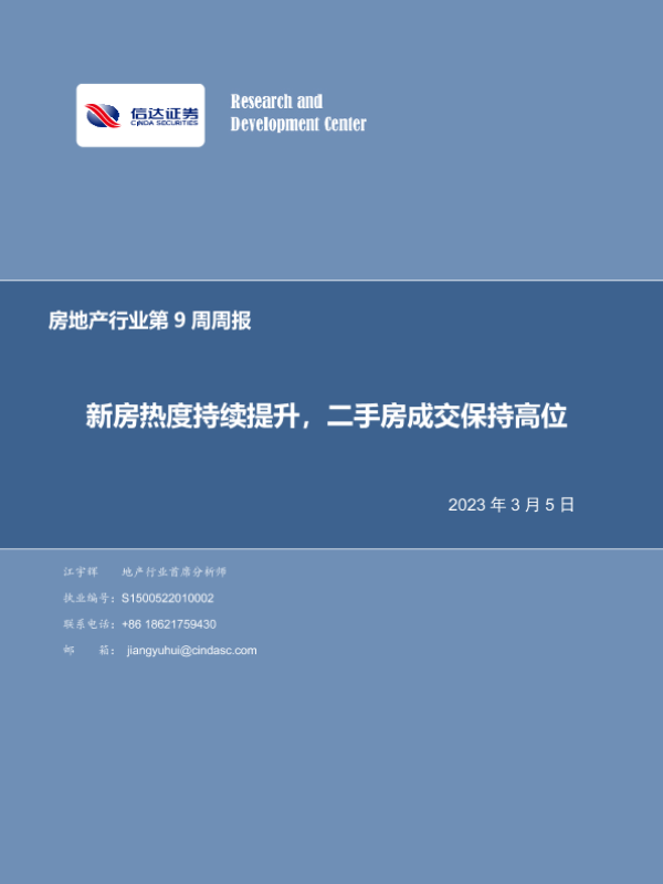 【信达证券】【20230305】房地产行业第9周周报:新房热度持续提升,二手房成交保持高位-19页