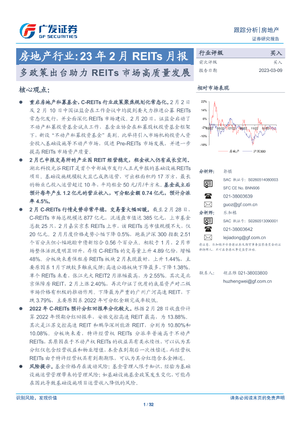 【广发证券】【20230309】房地产行业:23年2月REITs月报:多政策出台助力REITs市场高质量发展-32页
