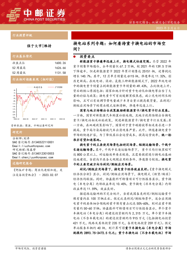 【中邮证券】【20230306】换电站系列专题:如何看待重卡换电站的市场空间?-15页