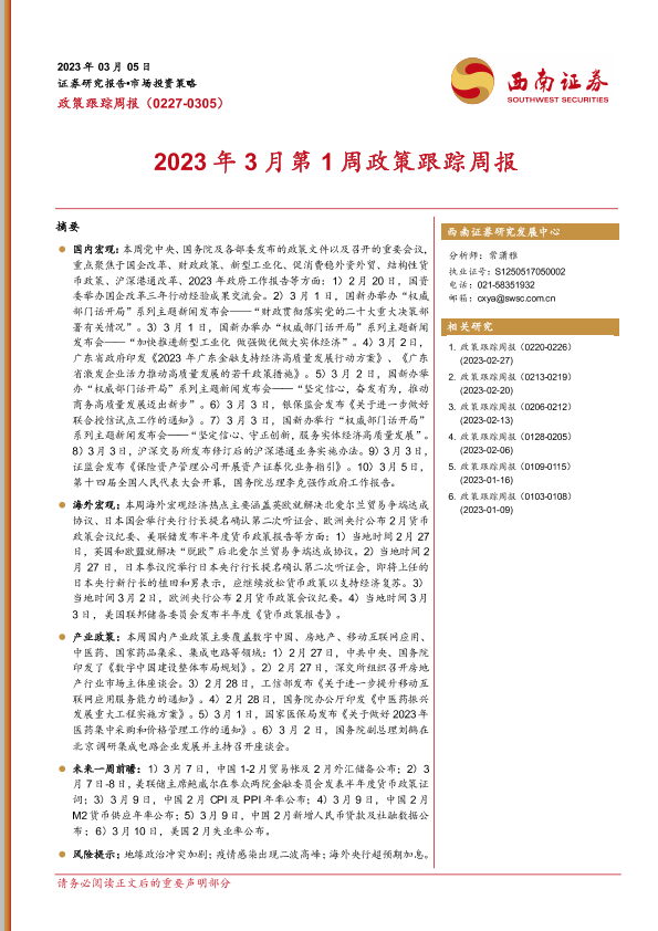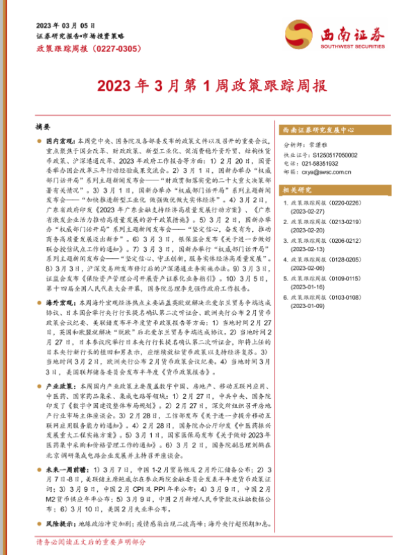 【西南证券】【20230305】2023年3月第1周政策跟踪周报-23页
