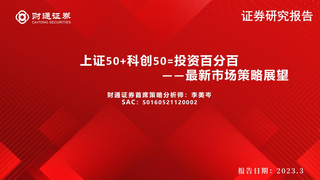 【财通证券】【20230309】最新市场策略展望:上证50+科创50=投资百分百-48页