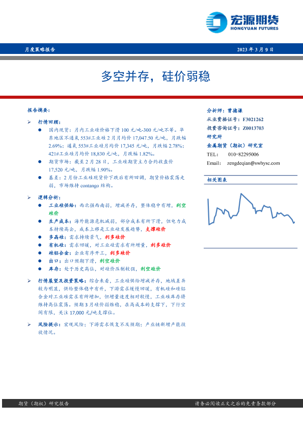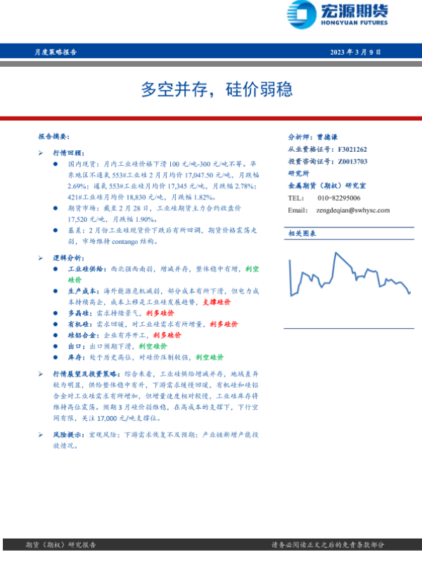 【宏源期货】【20230309】月度策略报告:多空并存,硅价弱稳-22页