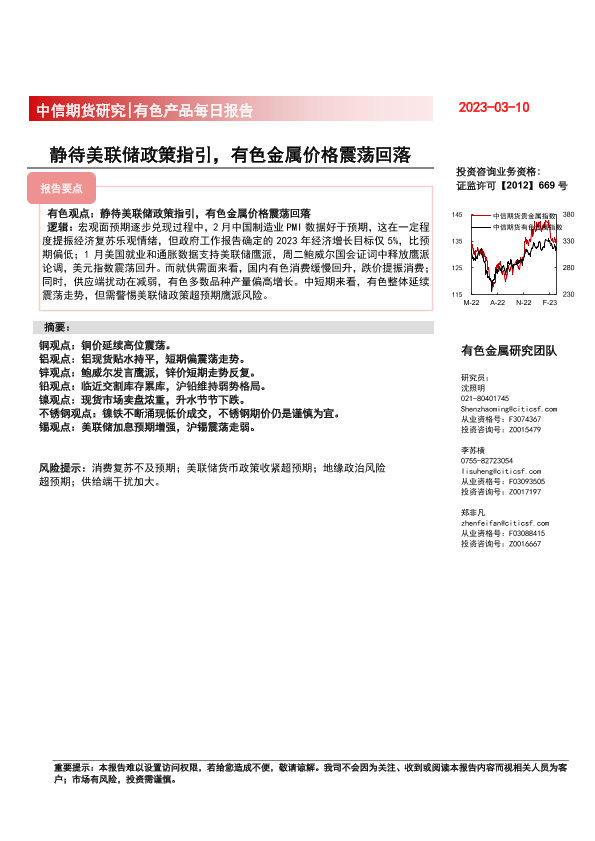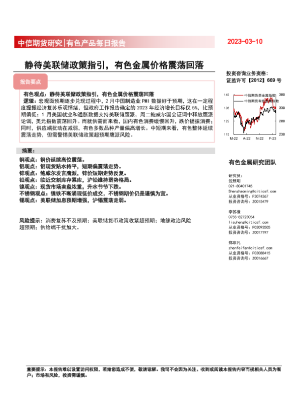 【中信期货】【20230310】有色产品每日报告:静待美联储政策指引,有色金属价格震荡回落-21页