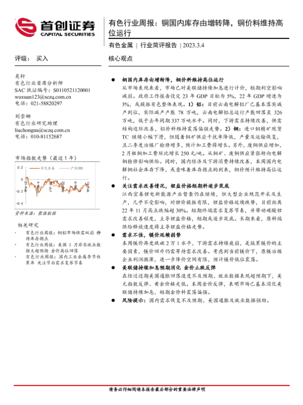 【首创证券】【20230304】有色行业周报:铜国内库存由增转降,铜价料维持高位运行-20页