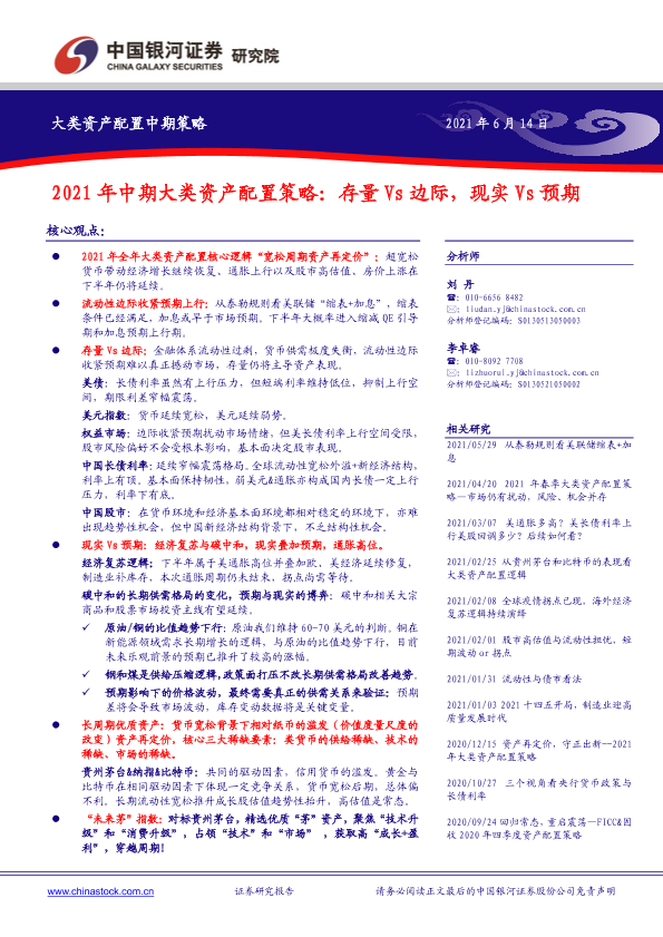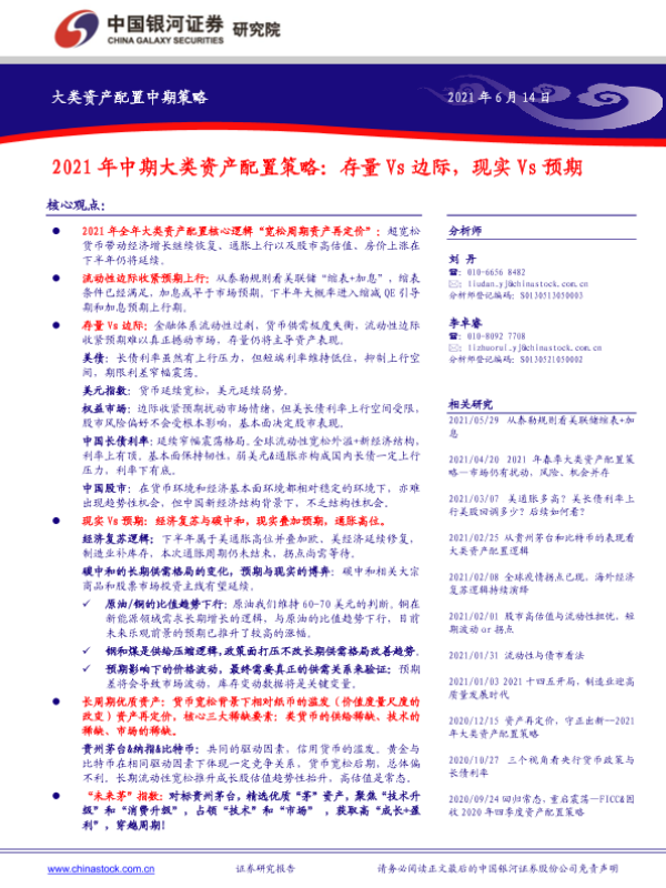 【银河证券】【20210614】2021年中期大类资产配置策略:存量Vs边际,现实Vs预期-26页