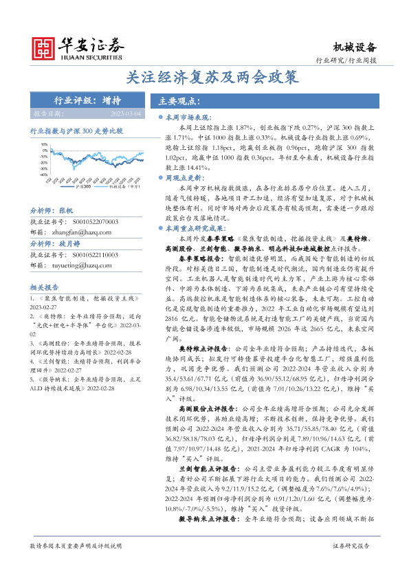 【华安证券】【20230304】机械设备行业周报:关注经济复苏及两会政策-15页