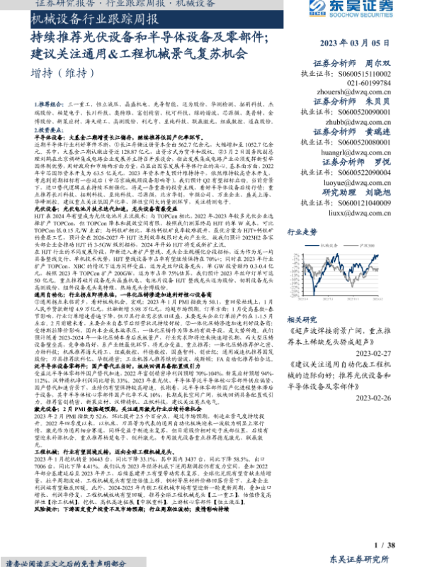 【东吴证券】【20230305】机械设备行业跟踪周报:持续推荐光伏设备和半导体设备及零部件;建议关注通用&工程机械景气复苏机会-38页