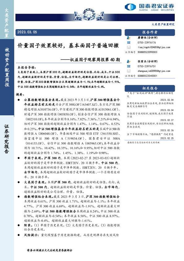 【国泰君安证券】【20230305】权益因子观察周报第40期:价量因子效果较好,基本面因子普遍回撤-17页