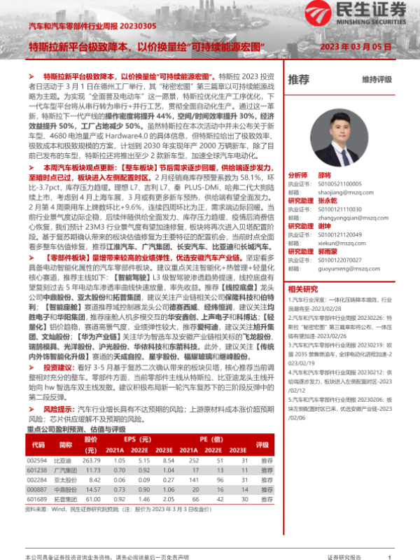 【民生证券】【20230305】汽车和汽车零部件行业周报:特斯拉新平台极致降本,以价换量绘“可持续能源宏图”-29页