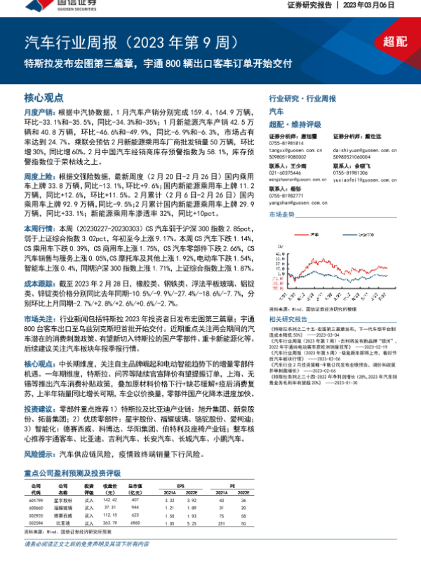 【国信证券】【20230306】汽车行业周报(2023年第9周):特斯拉发布宏图第三篇章,宇通800辆出口客车订单开始交付-39页