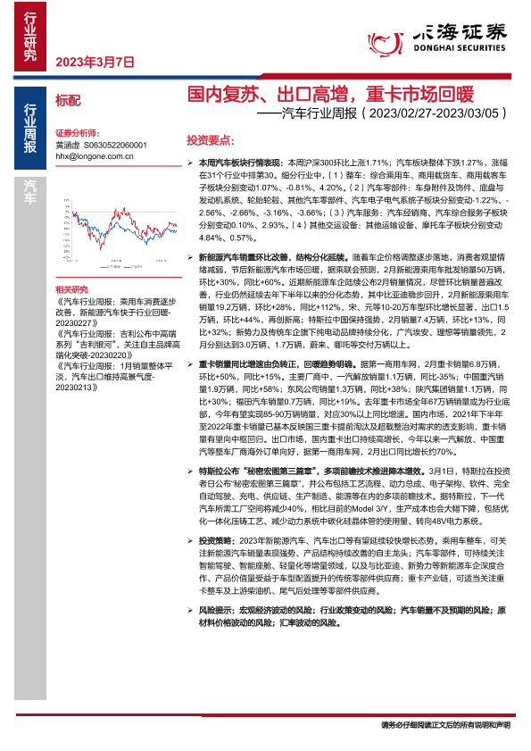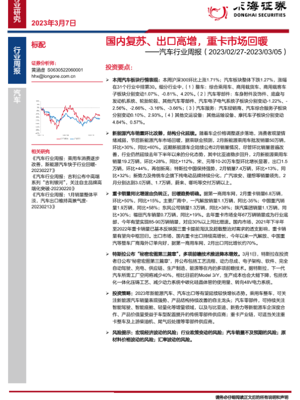 【东海证券】【20230307】汽车行业周报:国内复苏、出口高增,重卡市场回暖-16页
