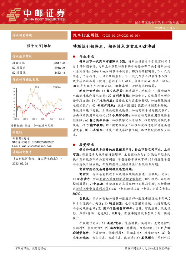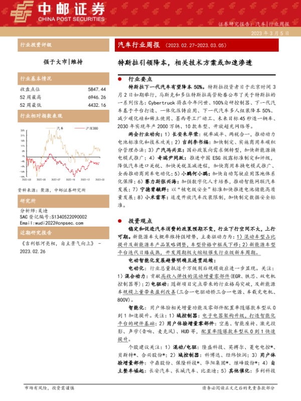 【中邮证券】【20230305】汽车行业周报:特斯拉引领降本,相关技术方案或加速渗透-20页