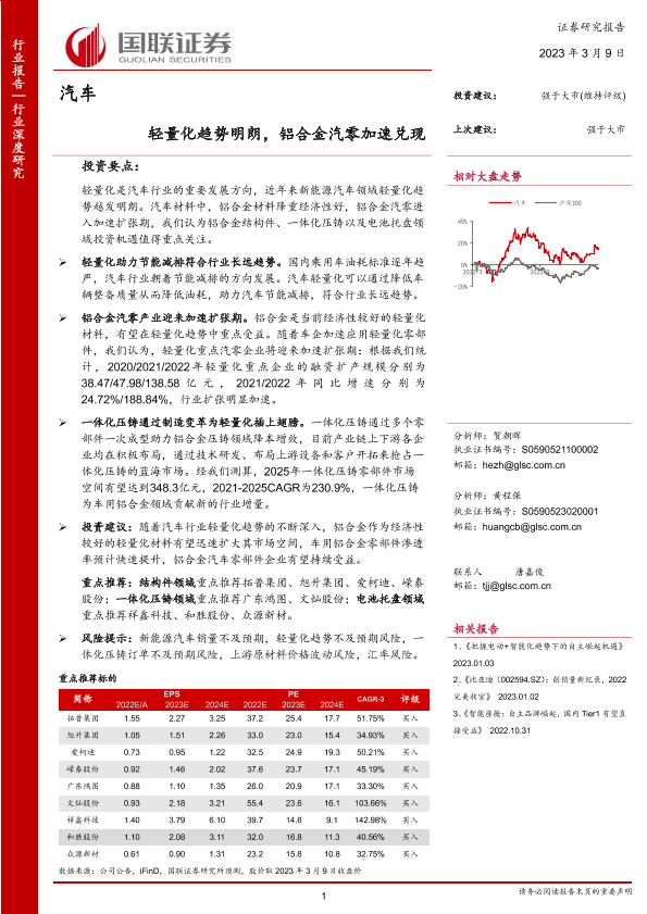 【国联证券】【20230309】汽车行业:轻量化趋势明朗,铝合金汽零加速兑现-57页