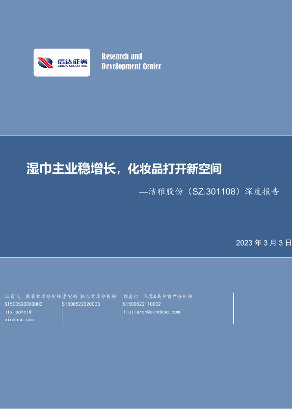 【信达证券】【20230303】洁雅股份深度报告(301108):湿巾主业稳增长,化妆品打开新空间-31页