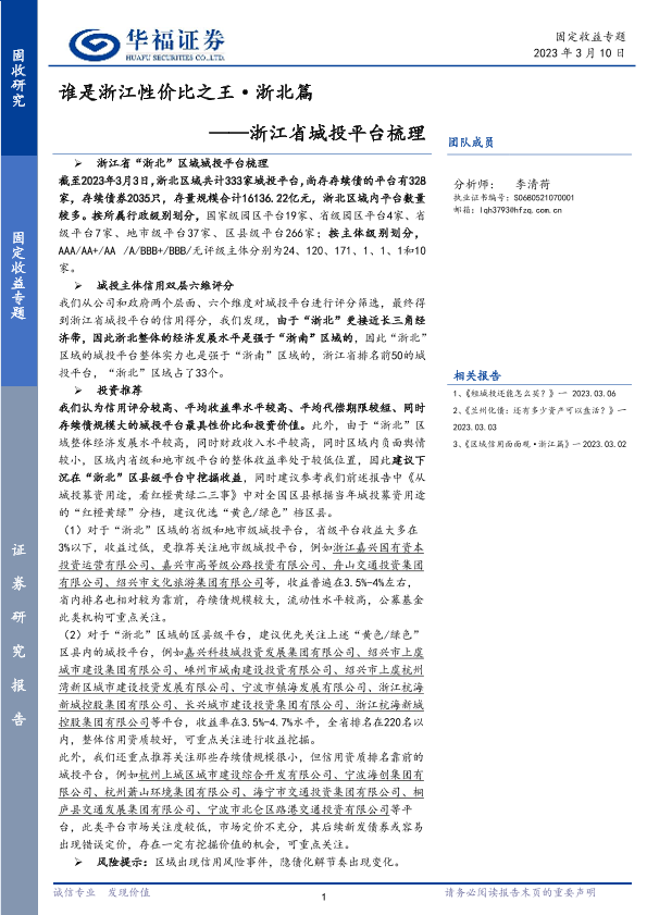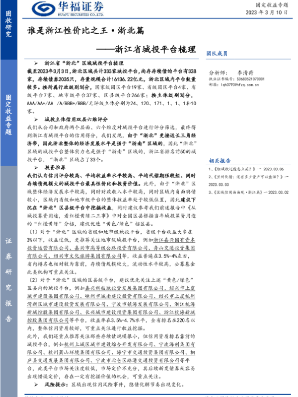 【华福证券】【20230310】浙江省城投平台梳理:谁是浙江性价比之王·浙北篇-83页