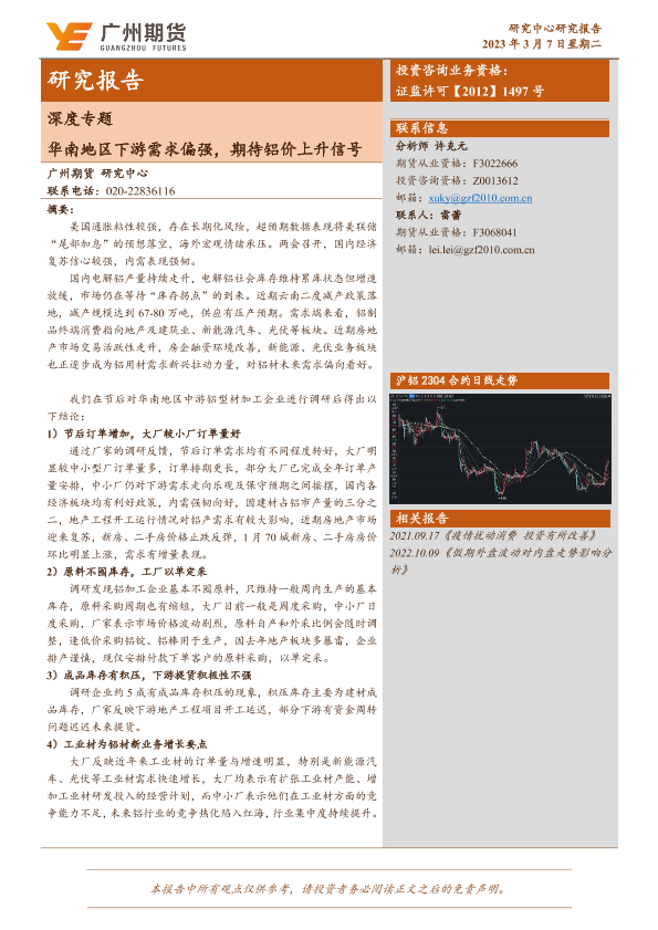 【广州期货】【20230307】深度专题:华南地区下游需求偏强,期待铝价上升信号-16页