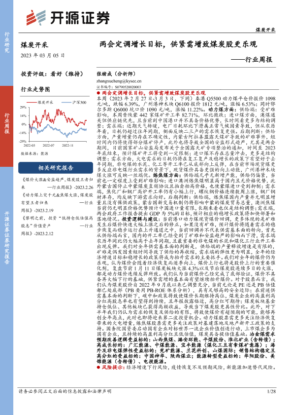 【开源证券】【20230305】煤炭开采行业周报:两会定调增长目标,供紧需增致煤炭股更乐观-28页