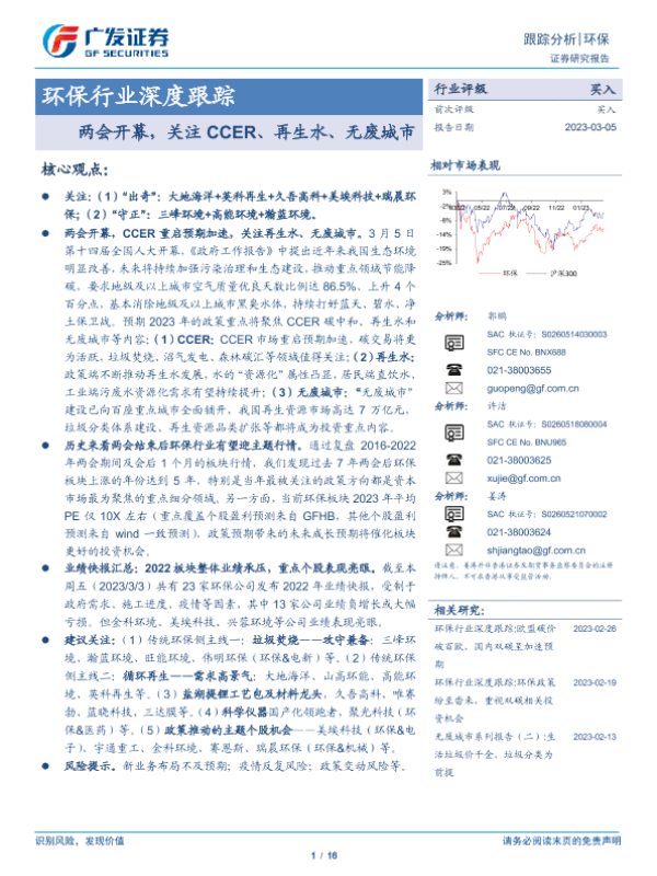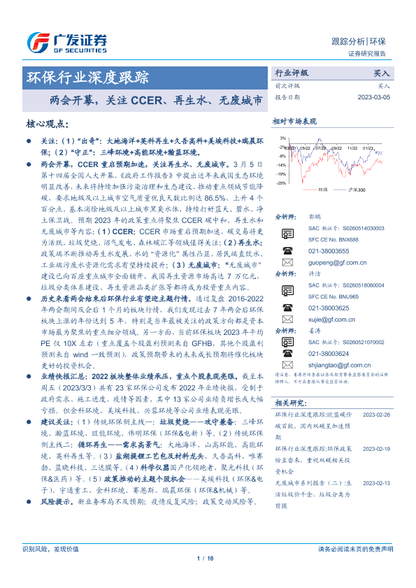【广发证券】【20230305】环保行业深度跟踪:两会开幕,关注CCER、再生水、无废城市-16页