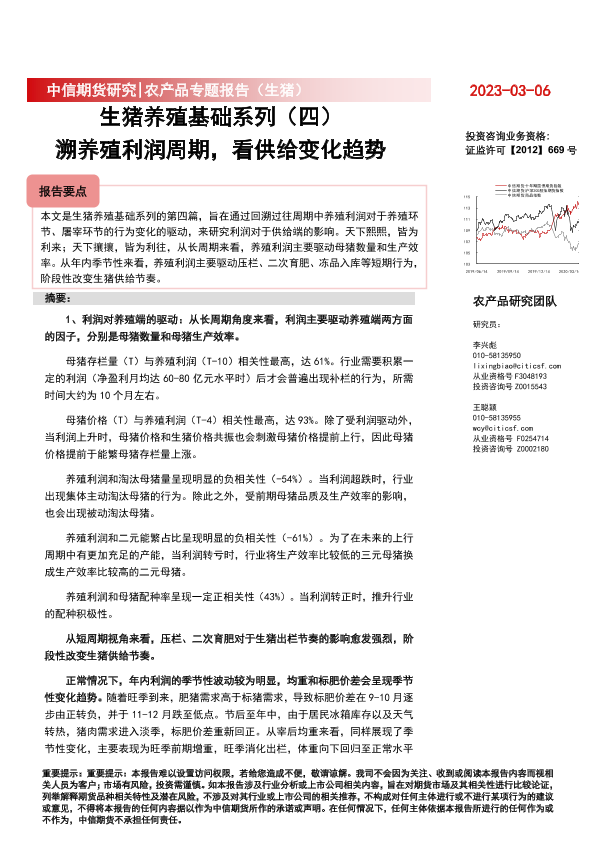 【中信期货】【20230306】生猪养殖基础系列(四):溯养殖利润周期,看供给变化趋势-22页