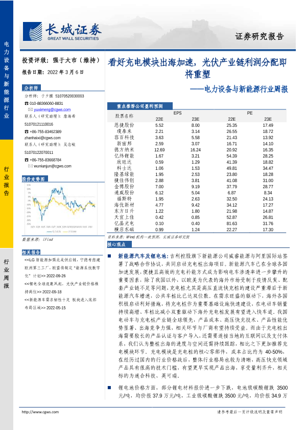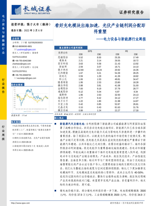 【长城证券】【20230306】电力设备与新能源行业周报:看好充电模块出海加速,光伏产业链利润分配即将重塑-15页