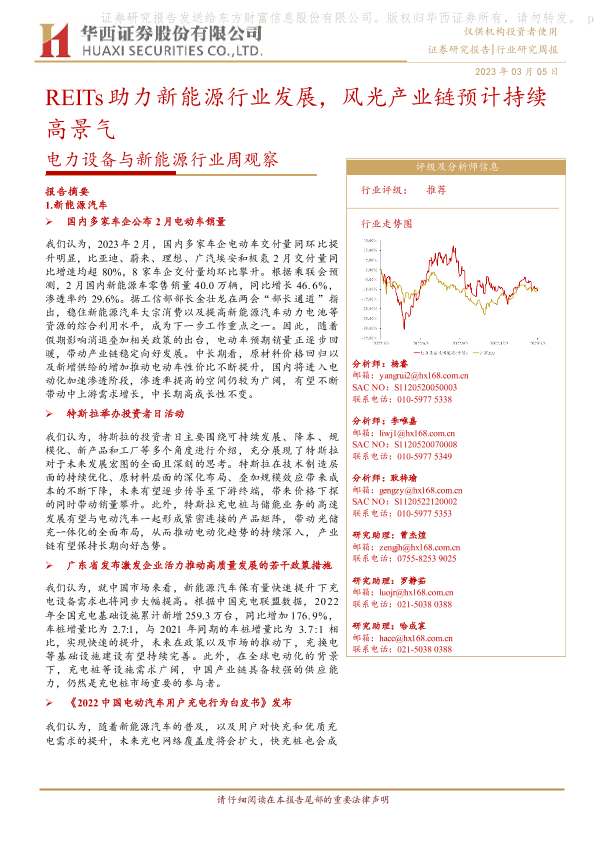 【华西证券】【20230305】电力设备与新能源行业周观察:REITs助力新能源行业发展,风光产业链预计持续高景气-25页