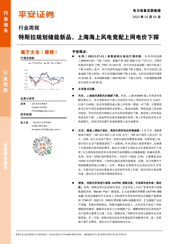 【平安证券】【20230305】电力设备及新能源行业周报:特斯拉规划储能新品,上海海上风电竞配上网电价下探-25页