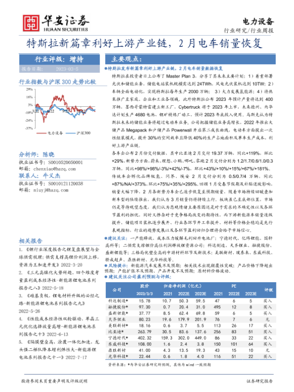 【华安证券】【20230305】电力设备行业周报:特斯拉新篇章利好上游产业链,2月电车销量恢复-29页