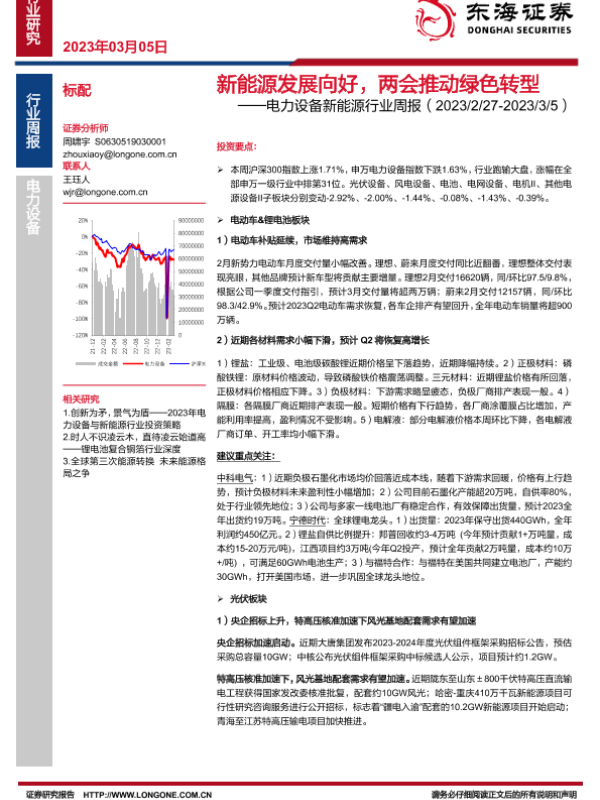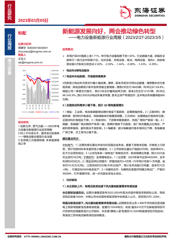 【东海证券】【20230305】电力设备新能源行业周报:新能源发展向好,两会推动绿色转型-34页