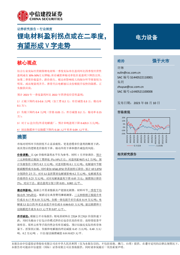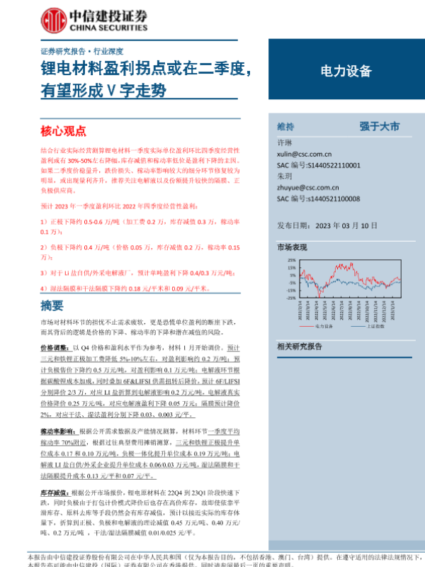 【中信建投证券】【20230310】电力设备行业:锂电材料盈利拐点或在二季度,有望形成V字走势-20页