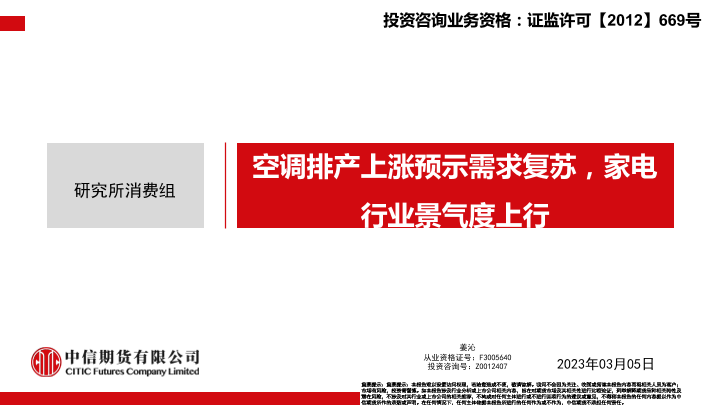 【中信期货】【20230305】空调排产上涨预示需求复苏,家电行业景气度上行-22页