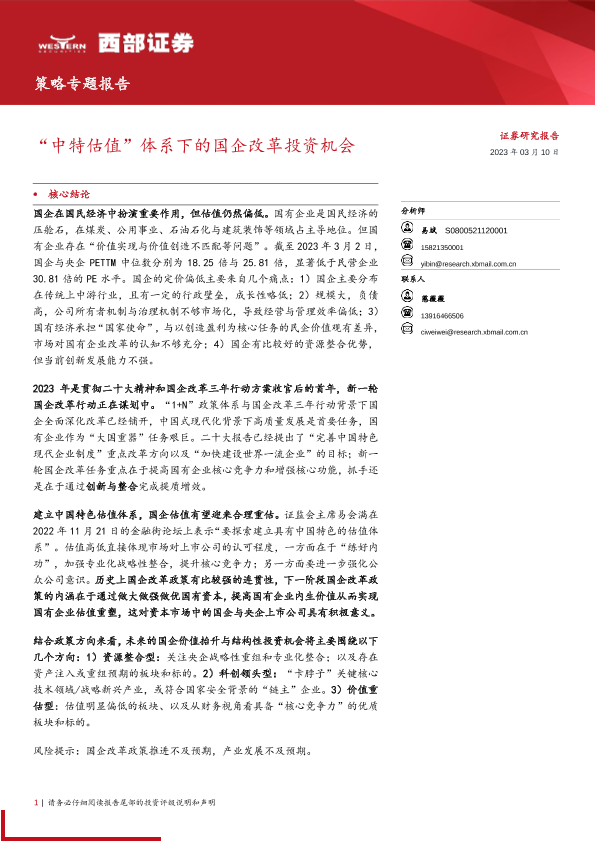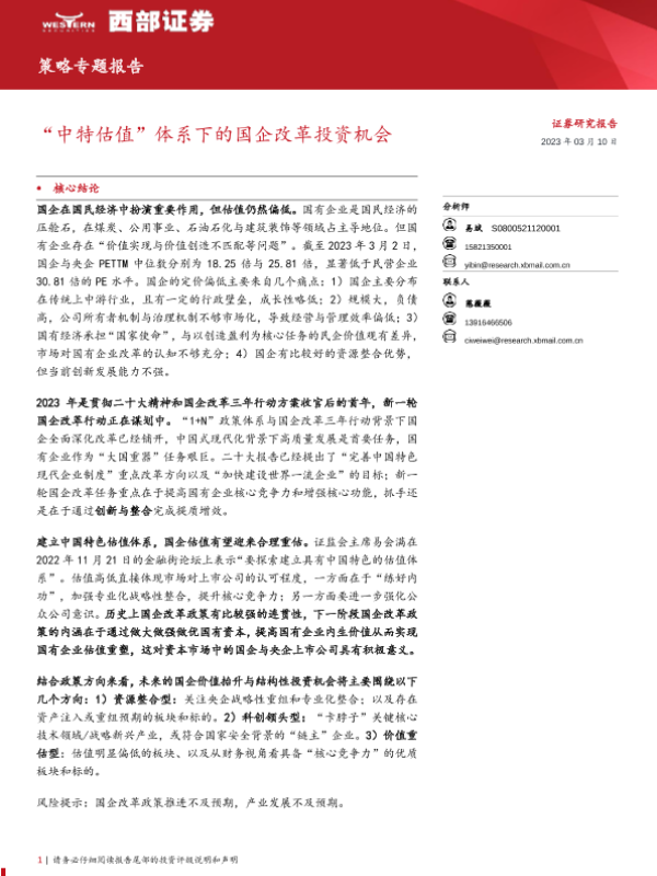 【西部证券】【20230310】策略专题报告:“中特估值”体系下的国企改革投资机会-18页