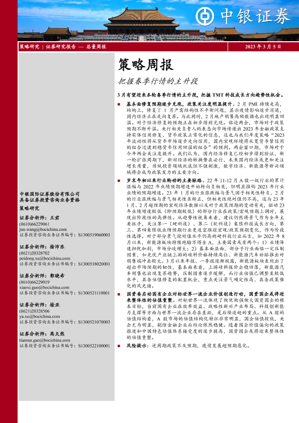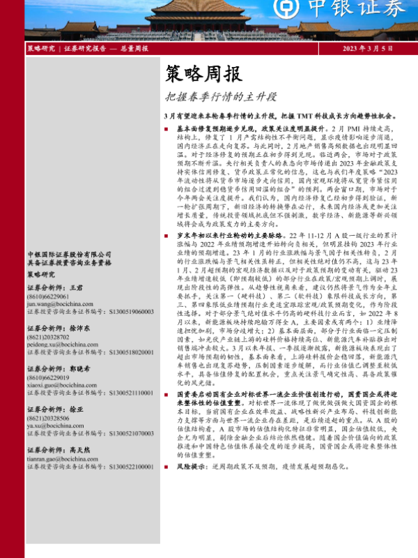 【中银证券】【20230305】策略周报:把握春季行情的主升段-20页