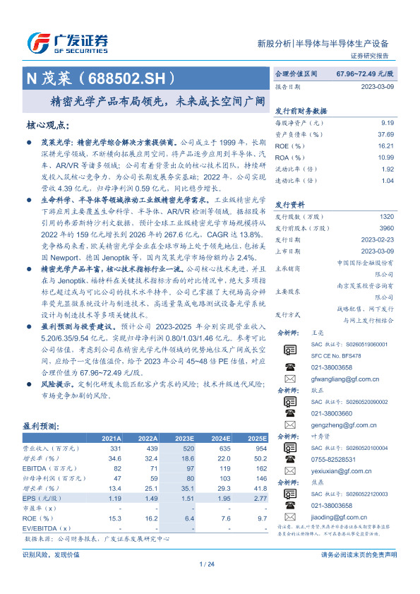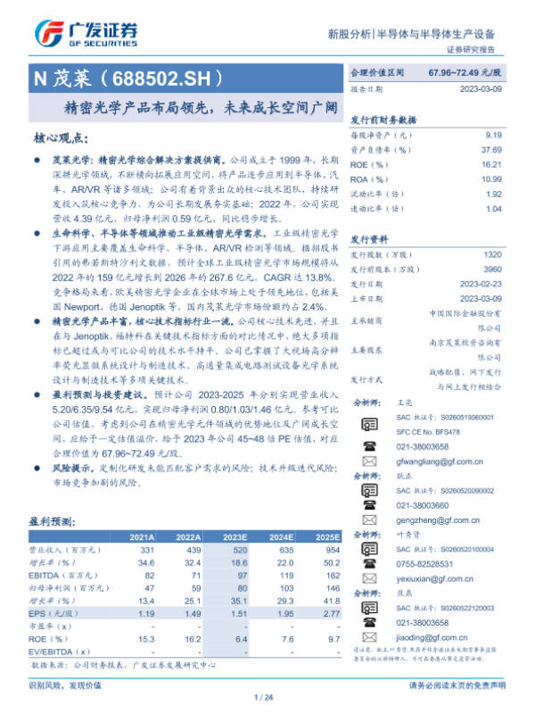 工业级应用 市场预测 技术分析 新股研究 精密光学