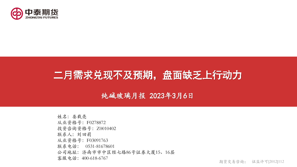 【中泰期货】【20230306】纯碱玻璃月报:二月需求兑现不及预期,盘面缺乏上行动力-25页