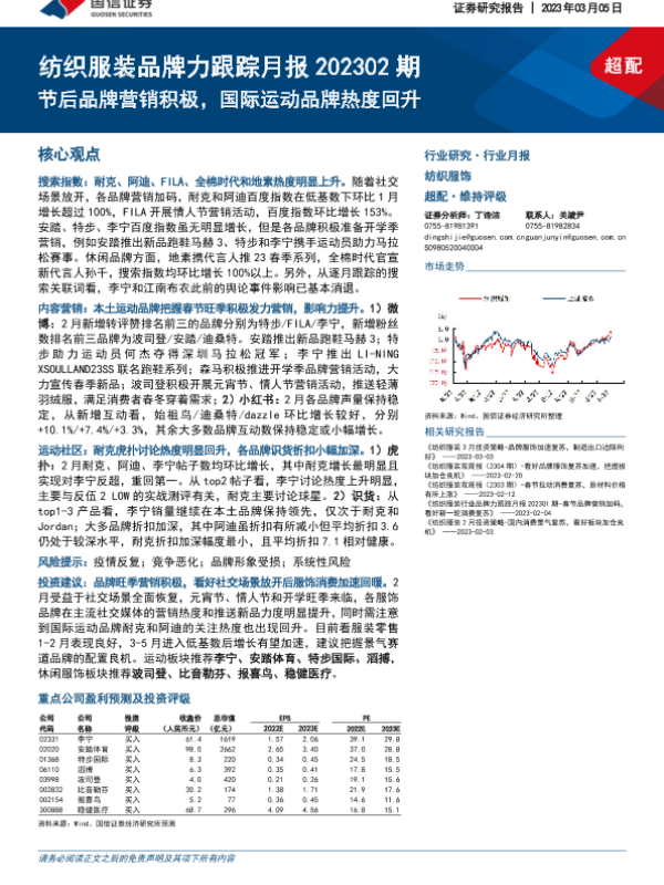 【国信证券】【20230305】纺织服装品牌力跟踪月报202302期:节后品牌营销积极,国际运动品牌热度回升-24页