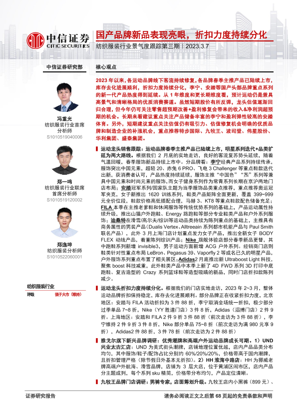【中信证券】【20230307】纺织服装行业景气度跟踪第三期:国产品牌新品表现亮眼,折扣力度持续分化-69页
