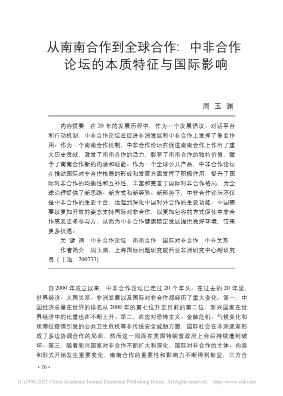 【上海国际问题研究院】【20200101】从南南合作到全球合作 中非合作论坛的本质特征与国际影响-17页