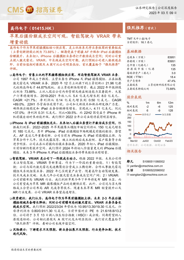 【海通证券】【20230309】苹果后摄份额成长空间可观,智能驾驶与VRAR带来增量动能-19页