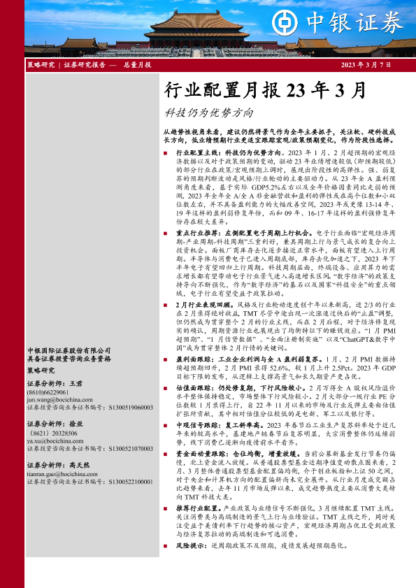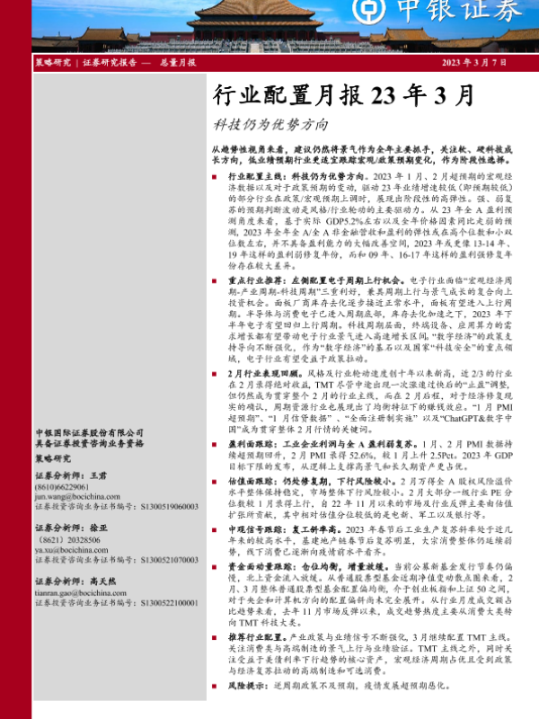 【中银证券】【20230307】行业配置月报23年3月:科技仍为优势方向-28页